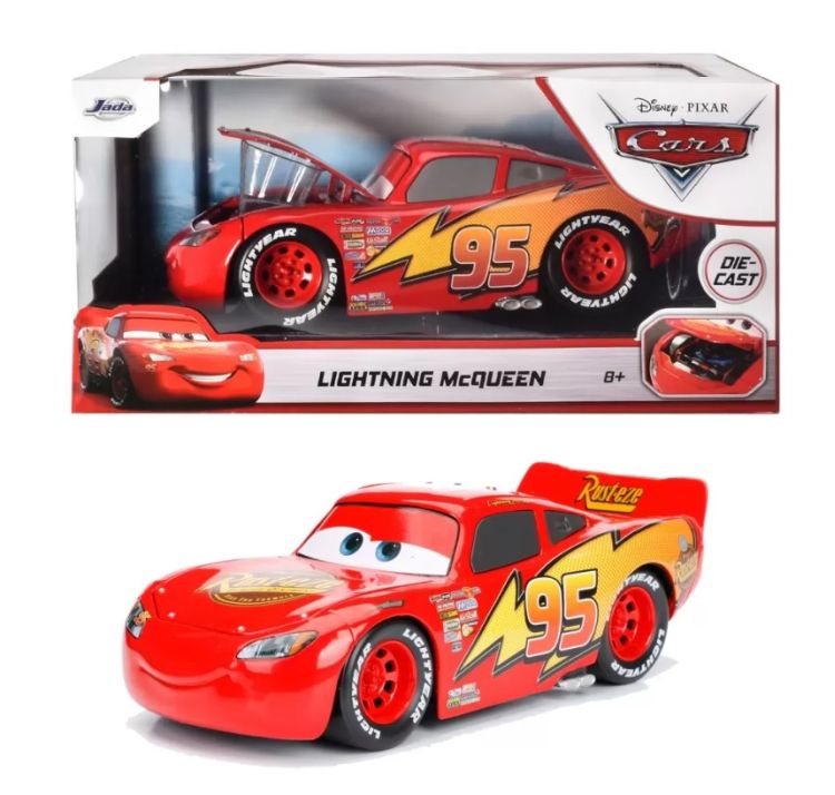 Masinuta din metal Lightning McQueen capota se pot deschide lungime masinuta 18 cm. Cine nu-l cunoaste masina rosie de curse cu autocolantele lui in forma de fulger ochii mari si prietenosi si gura zambitoare stralucitoare. De la lansarea filmului Cars inconfundabilul Fulger McQueen si prietenii sai au cucerit lumea copiilor si este greu de imaginat fara ei.Specificatii