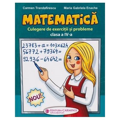 Culegerea de matematica pentru clasa a IV-a este elaborata conform programei scolare in vigoare. Lucrarea respecta succesiunea lectiilor din noile manuale si este utila atat elevilor cat si cadrelor didactice si parintilor. Continuturile culegerii sunt ordonate progresiv pe niveluri diferite de dificultate avand rolul de a dezvolta competentele specifice dar si gandirea logica si spiritul de observatie. La sfarsitul fiecarei unitati de invatare sunt prezente o recapitulare si o evaluare prin care scolarul isi poate verifica si consolida cunostintele si competentele dobandite in mod treptat si sistematic. Copiilor care doresc sa se pregateasca pentru concursuri le este dedicata rubrica Pagina campionilor cu exercitii erse si cu un nivel mai ridicat de dificultate. La finalul culegerii sunt adaugate raspunsuri pentru toate exercitiile si problemele propuse iar pentru cele mai dificile sunt date sugestii de rezolvare sau chiar rezolvari complete. Aplicatiile variate si atragatoare vizeaza trezirea curiozitatii si a interesului copiilor pentru aceasta disciplina precum si dezvoltarea creativitatii si a increderii in sine.Specificatii