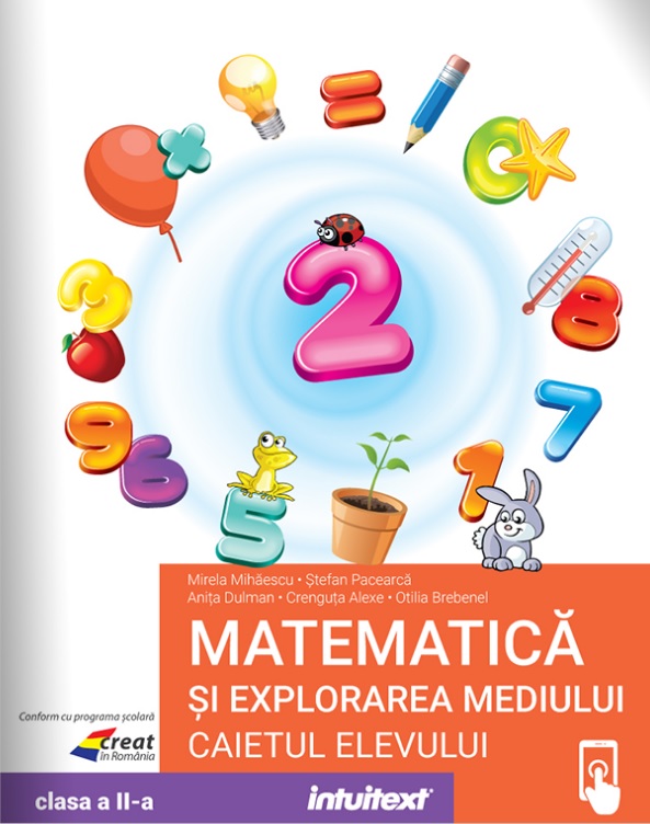 Caietul oferă elevilor de clasa a II-a contexte noi pentru a-și dezvolta competențele specifice disciplinei Matematică și explorarea mediului, conform cerințelor programei școlare. Temele abordate coincid cu cele de la Comunicare în limba română, sarcinile de lucru și exercițiile – joc constituind premise pentru o reală învățare integrată. Alegerea acestui caiet reprezintă o opțiune sigură pentru a avea un copil competent, deschis către noi şi variate experiențe de învăţare, pregătit pentru evaluarea națională de la sfârșitul clasei a II-a.