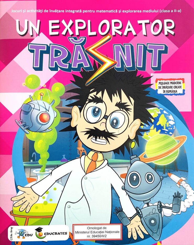 In pachetul educational ”Un explorator trasnit” (matematica si explorarea mediului pentru clasa a II-a) elevul va porni alaturi de Tino Inventino si de simpaticul sau robot in 11 misiuni de explorare prin lumea plantelor, a animalelor, a inamicilor nevazuti din corpul nostru si chiar prin univers. Pachetul este compus dintr-o revista (64 de pagini color) si o aplicatie cu activitati multimedia. Aplicatia ruleaza pe Windows si Android (versiunea minima 4. 4) si poate fi vizualizata GRATUIT introducand codul de acces din revista.