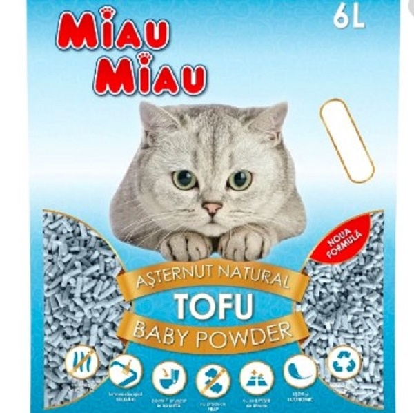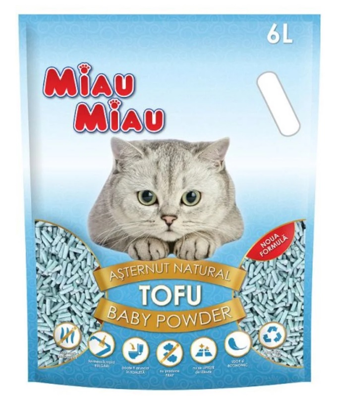Miau Miau Asternut igienic pentru pisici, Tofu Baby Powder, 6 l