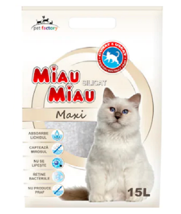 MIAU MIAU Asternut silicatic pentru Pisici, 15 l