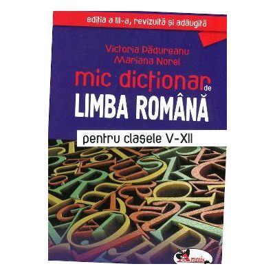Reeditarea Micului dictionar al limbii romane, autori Victoria Padureanu si Mariana Norel, a fost o adeverata necesitate, semnalata deopotriva de profesorii de gimnaziu si liceu, cat si de elevi. Concizia si coerenta structurarii materialului il transforma intr-un foarte util instrument de studiu, iar complementaritatea notiunilor de vocabular, fonetica, morfologie si sintaxa ofera dictionarului o structura completa si complexa