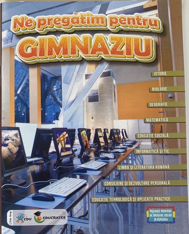 Pachetul educational Ne pregatim pentru gimnaziu se adreseaza elevilor din clasa a IV-a si este compus dintr-un auxiliar 64 de pagini color si o aplicatie educativa cu 30 de documentare din principalele discipline care urmeaza sa fie studiate in gimnaziu. Intreg continutul educational ruleaza pe Windows si Android versiunea minima 4. 4 si poate fi vizualizat GRATUIT descarcand versiunea DEMO si introducand codul de acces din revista coperta fata verso . Iti propunem sa o luam usor incet si sigur spre descoperirea secretelor clasei a V-a. Am tras cu ochiul printre disciplinele pe care le vei studia anul viitor matematica limba si literatura romana istorie geografie biologie educatie tehnologica si aplicatii practice informatica si TIC consiliere si dezvoltare personala si educatie sociala. Am adunat informatii interesante imagini spectaculoase curiozitati aplicatii si o multime de ponturi ce-ti vor fi de mare ajutor. Cele 30 de documentare animate care insotesc aplicatia sunt foarte utile in pregatirea pentru clasa a V-a si cuprind principalele informatii noi cu care te vei intalni in gimnaziu. CUPRINS MATEMATICA 1. Numerele naturale 2. Factorul comun 3. Suma lui Gauss 4. Teorema impartirii cu rest 5. Puterea cu exponent natural a unui numar 6. Divizibilitatea numerelor naturale 7. Fractii LIMBA SI LITERATURA ROMANA 1. Despre cuvinte 2. Tipuri de sunete. Silaba. Accentul 3. Enuntul. Propozitia. Partile de propozitie 4. Verbul 5. Substantivul si prietenii lui ISTORIE 1. Introducere in istorie 2. Preistoria 3. Orientul Antic 4. Civilizatia greaca si sinteza elenistica 5. Geto-dacii si lumea romana 6. Europa medievala GEOGRAFIE 1. Introdcere in geografie 2. Terra o planeta a Universului 3. Terra o planeta in miscare 4. Terra o planeta in transformare BIOLOGIE 1. Ce este biologia 2. Principalele grupe de vietuitoare Plantele 3. Principalele grupe de vietuitoare Animalele EDUCATIE TEHNOLOGICA SI APLICATII PRACTICE Introducere in educatia tehnologica INFORMATICA SI TIC Introducere in informatica CONSILIERE SI DEZVOLTARE PERSONALA O disciplina despre tine EDUCATIE SOCIALA Gandire critica si drepturile copiluluiSpecificatii