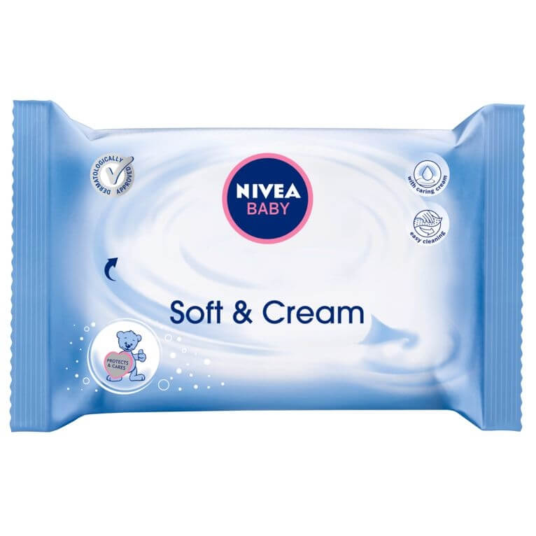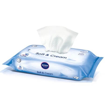 Servetelele NIVEA Soft & Cream sunt imbibate in crema de galbenele pentru a oferi ingrijire pielii iritate a bebelusilor. Ofera efect de calmare instantanee impotriva disconfortului, in timp ce pielea este curatata in mod eficient. Formula dezvoltata in colaborare cu medici pediatri si dermatologi. Compatibilitate la nivelul pielii testata clinic si dermatologic.