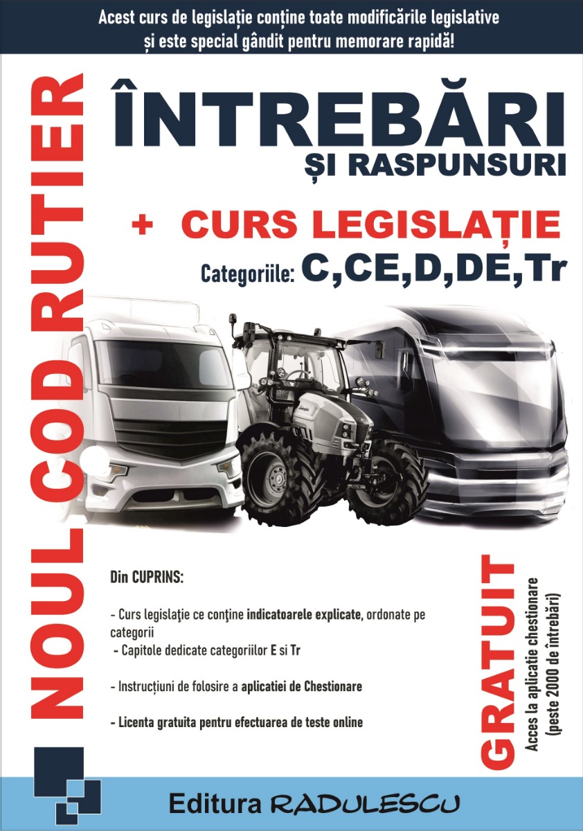 Noul cod rutier. Intrebari si raspunsuri + Curs legislatie. Categoriile C, CE, D, DE, Tr. Editia 2024