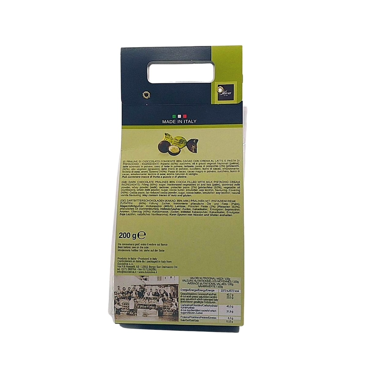 Oliva Praline ciocolata neagra cu fistic, 200 g