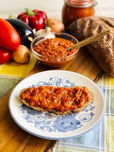 Ingrediente: Legume in portii variabile 80% (vinete coapte, ardei capia copti, morcov, ceapa), ulei vegetal, concentrat de tomate, sare, zahar, condimente (piper, foi de dafin).
