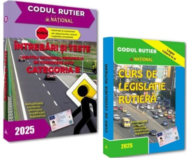 Noua editie 2025 – actualizata, revizuita si completata cu intrebari noi - a celui mai exhaustiv manual destinat sa faciliteze deprinderea si aprofundarea notiunilor elementare de circulatie rutiera in vederea obtinerii permisului de conducere categoria B - INTREBARI SI TESTE PENTRU OBTINEREA PERMISULUI DE CONDUCERE AUTO CATEGORIA B – ofera, de fapt, un pachet elementar de materiale specifice, care contine: o carte cu intrebari actualizate pentru verificarea cunostintelor de circulatie rutiera si o brosura care contine principalele legi ale codului rutier (Ordonanta de urgenta a Guvernului nr. 195/2002 privind circulatia pe drumurile publice, cu toate completarile la zi, si Regulamentul de aplicare a Ordonantei de urgenta nr. 195/2002), precum si explicatiile raspunsurilor corecte ale intrebarilor continute in carte.