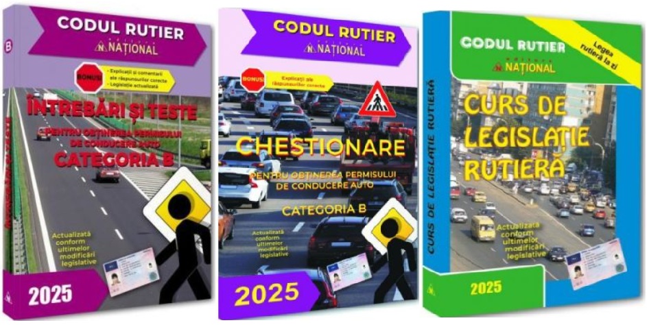Pachet 2025 pentru obtinerea permisului de conducere auto, categoria B. Intrebari. Teste. Legislatie. Chestionare