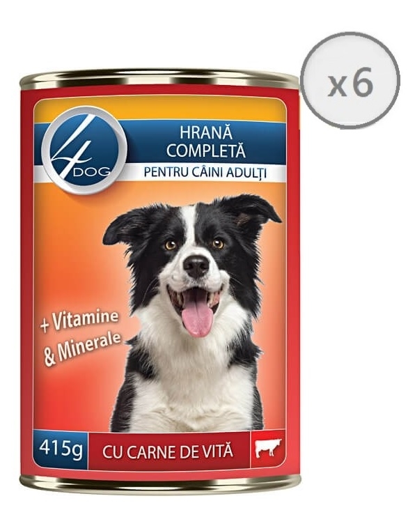 Pachet 4DOG Conserva Caini cu carne de vita 415g x 6 buc