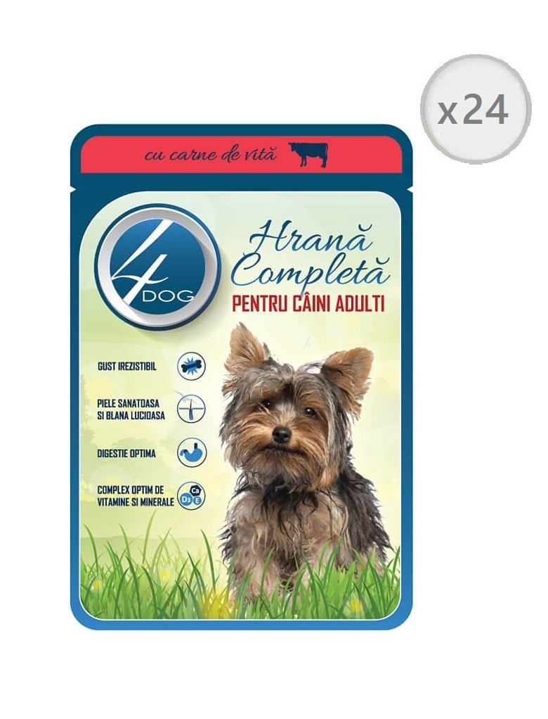 Pachet 4Dog Plic Hrana pentru caini cu carne de vita in sos, 100g x 24 buc