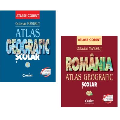 Pachetul contine doua Atlase Romania. Atlas geografic scolar - Octavian Mandrut Atlasul geografic scolar Romania incearca sa realizeze o sinteza cartografica actuala asupra geografiei Romaniei cu o preponderenta destinatie scolara. El reprezinta o sursa importanta de pregatire cotidiana a elevilor din invatamantul preuniversitar. Destinat in principal elevilor de gimnaziu si liceu profesorilor dar si tuturor celor interesati el ajuta la cunoasterea si intelegerea elementelor esentiale referitoare la geografia Romaniei. Atlas geografic scolar - Octavian Mandrut Atlasul isi propune sa acopere un gol informational in domeniul geografiei si al cartografiei scolare. Lucrarea se adreseaza in egala masura elevilor studentilor profesorilor si in general tuturor celor interesati de o informare corecta complexa dar selectiva actuala si moderna atat asupra principalelor probleme de geografie ale lumii contemporane cat si partial asupra celor de geografie a Romaniei. Acestea din urma sunt prezentate pe larg in alte doua atlase Corint Mic atlas de geografie a Romaniei si Romania. Atlas geografic scolar. Pentru elevi si profesori aceasta lucrare are functia unui element curricular central fidel programei si manualelor scolare. Selectarea informatiilor redate pe harti s-a facut dupa criteriul semnificatiei lor actuale ceea ce confera lucrarii in ansamblul ei caracterul unui instrument de lucru si de informare deosebit de util. Lucrarea continua intr-o forma extinsa si actua lizata atlasul publicat sub acelasi titlu la Editura Corint atlas care a beneficiat ani de-a randul de tiraje impresionante Octavian Mandrut este profesor doctor in geografie cercetator Stiintific pr. I la Universitatea de Vest Vasile Goldis din Arad autor de manuale scolare pentru clasele III XII atlase culegeri de sinteze si teste lucrari din diferite domenii ale geografiei ghiduri metodologice printre care primul ghid de evaluare la geografie caiete de activitate independenta a elevilor cursuri universitare. A revizuit recent pentru anul scolar in curs manualul pentru clasa a XII-a Europa Romania Uniunea Europeana. Probleme fundamentale si atlasele geografice Romania atlas geografic scolar si Atlas geografic scolar . In cadrul Universitatii de Vest Vasile Goldis din Arad a elaborat in anul 2012 pentru sectia de geografia turismului mai multe cursuri noi Geografia regionala a Romaniei Geografia mediului Geografia Uniunii Europene etc. si lucrari din domeniul stiintelor educatiei centrate pe problematica instruirii pe competente aparute in cadrul Editurii Vasile Goldis University Press.