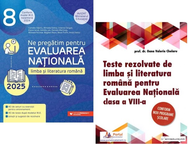 Noua culegere la limba romana, Evaluarea Nationala - Teste rezolvate la limba si literatura pentru clasa a VIII-a, contine 25 de teste similare celor aflate pe foaia de examen, axate pe modelel PISA.
