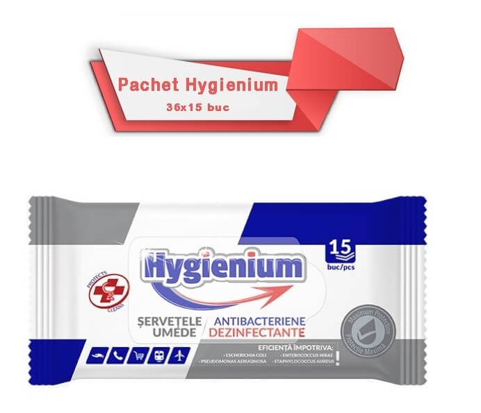 Pachet Hygienium Servetele Umede Antibacteriene - Dezinfectante 36 x 15 buc