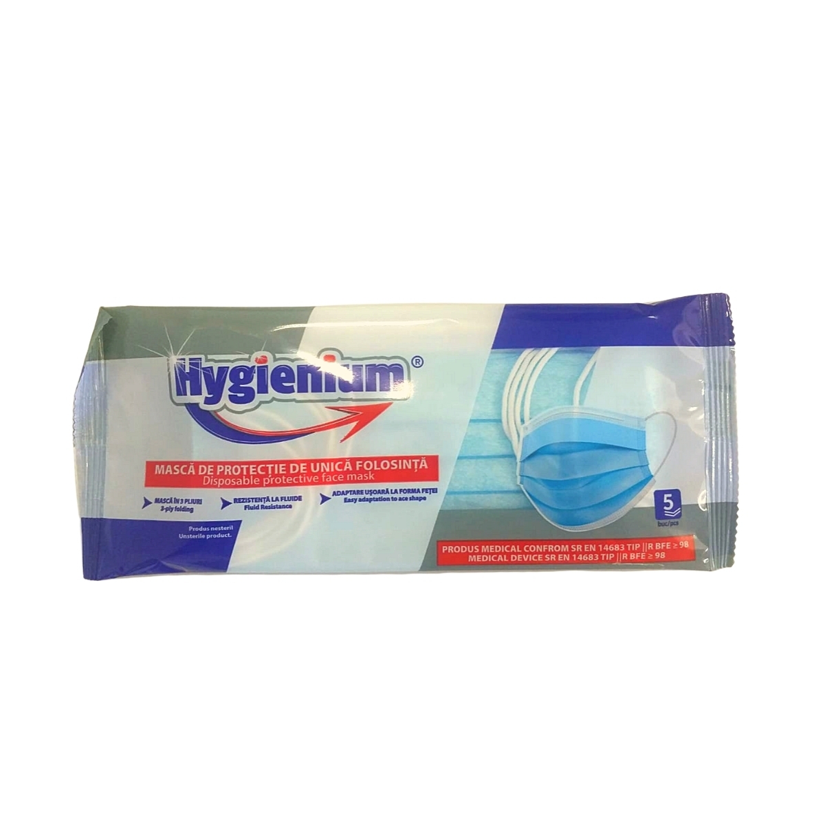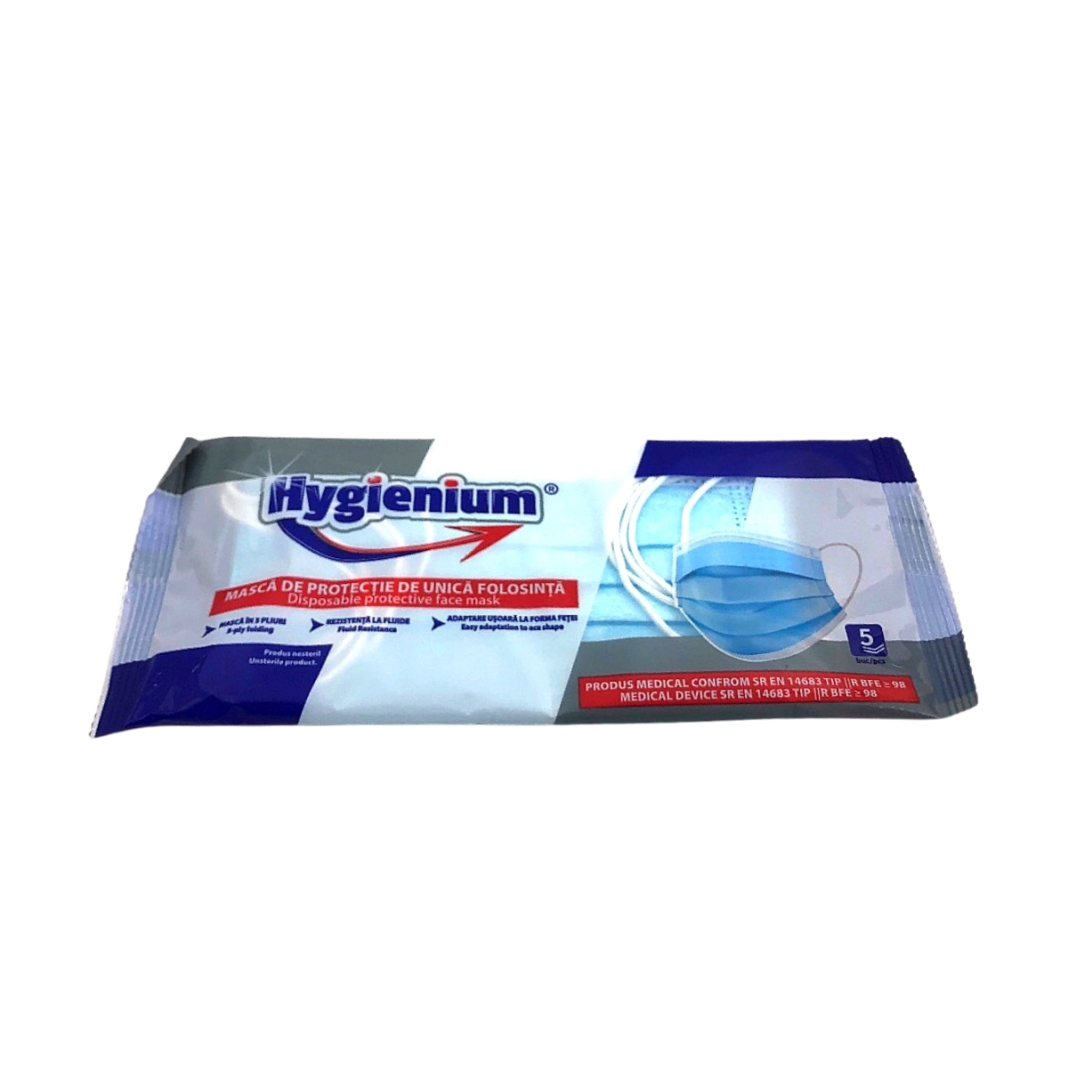 Pachet Hygienium:Servetele dezinfectante maini 48 buc + 5 Masti de unica folosinta TIP 2R