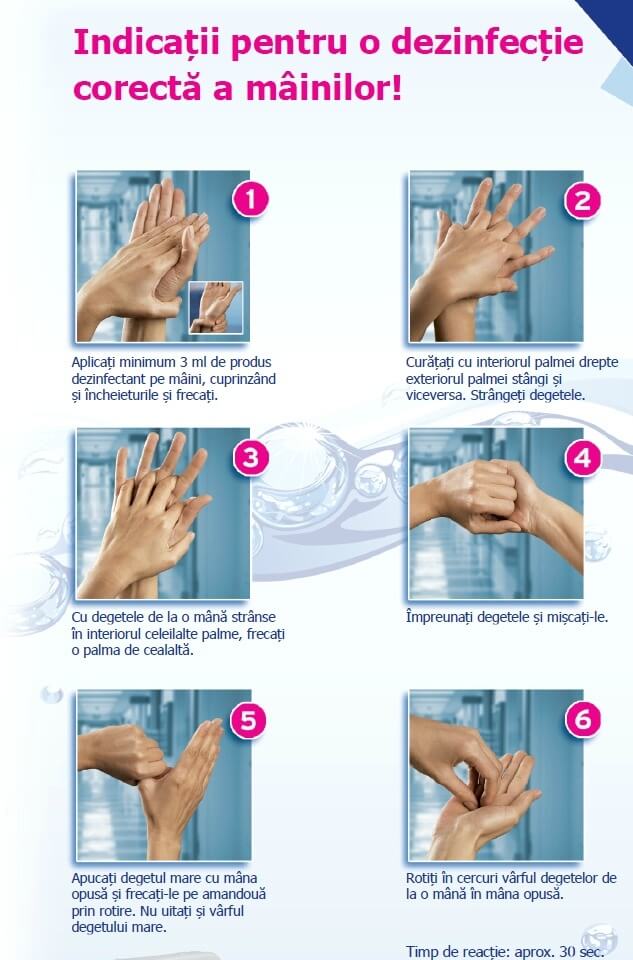 Produsul contine ingrediente specifice la baza, care elimina bacteriile precum Escherichia coli, conform testului EN 1500 si