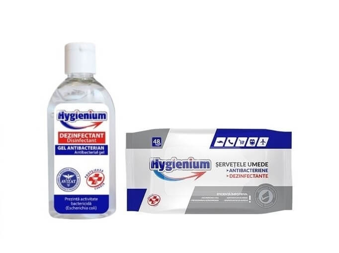 Pachet Hygienium VIRUCID Gel dezinfectant maini 50 ml + Servetele Umede dezinfectante 48 buc, avizat Ministerul Sanatatii