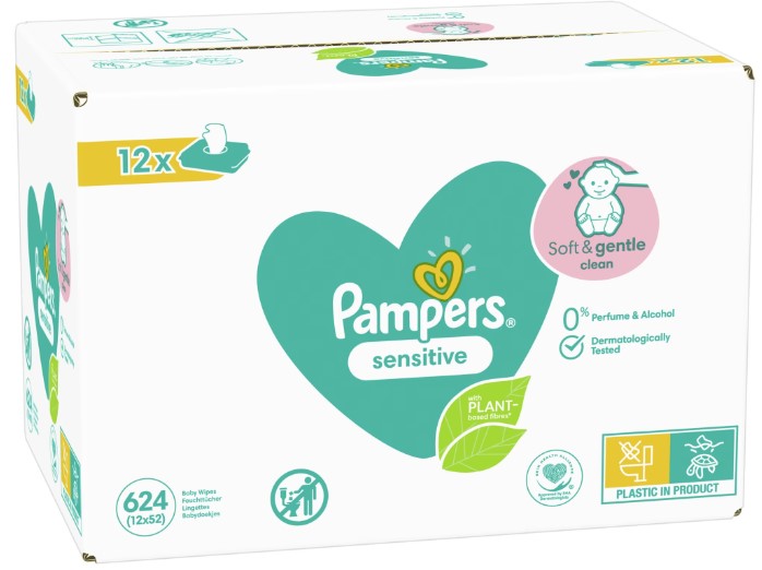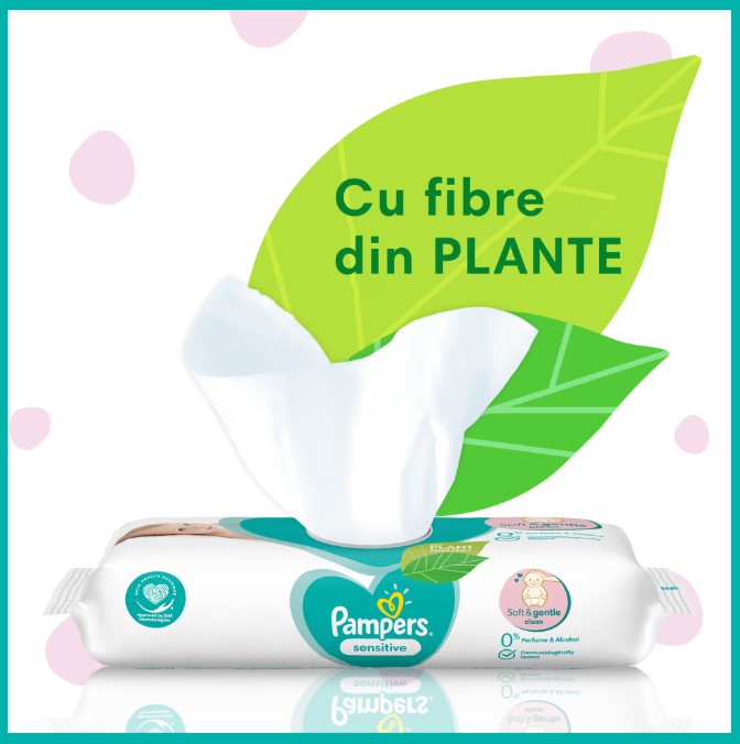 - Servetelele Pampers Sensitive sunt testate dermatologic si sunt potrivite pentru pielea delicata a nou-nascutilor.