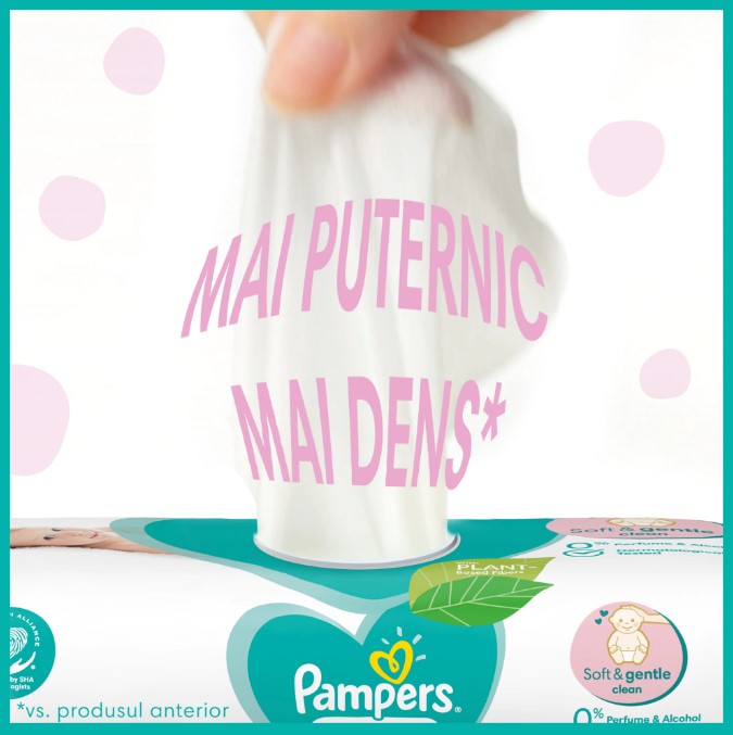 - Special concepute pentru bebelusul tau, servetelele Pampers Sensitive, ajuta la protejarea impotriva iritatiilor pielii si mentin nivelul natural al pH-ului.