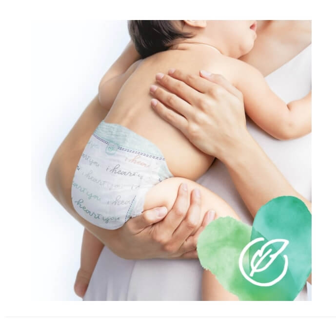 Pampers Pure ofera o ingrijire fara compromisuri pentru bebelusul tau, pastrandu-i pielea uscata pana la 12 ore.