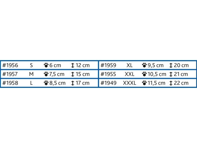 Marimea: luati o ruleta si masurati cu atentie cea mai lata zona a labutei - asigurati-va ca masurati in timp ce cainele se sprijina pe labuta respectiva, deoarece atunci ea e cel mai "extinsa". Acesta e cel mai important pas pentru a va asigura ca alegeti un pantof potrivit. E posibil ca latimea labutei sa fie intre doua marimi; in acest caz, alegeti incaltamintea cu marimea mai mare. Va trebui sa masurati si lungimea piciorului cainelui, pentru a lua incaltamintea cu lungimea buna. Majoritatea produselor din gama noastra de incaltaminte pentru caini au marimi intre XS-XXL, astfel ca sunteti acoperiti, fie ca aveti un Pug sau un Labrador.
