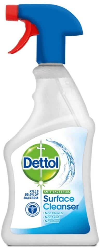 Dettol Antibacterial Cleanser Surface Trigger ucide 99.9% din germeni, incluzand E coli, Salmonella si Staphylococcus. Fara inalbitor, il poti folosi in jurul tau acasa zilnic.