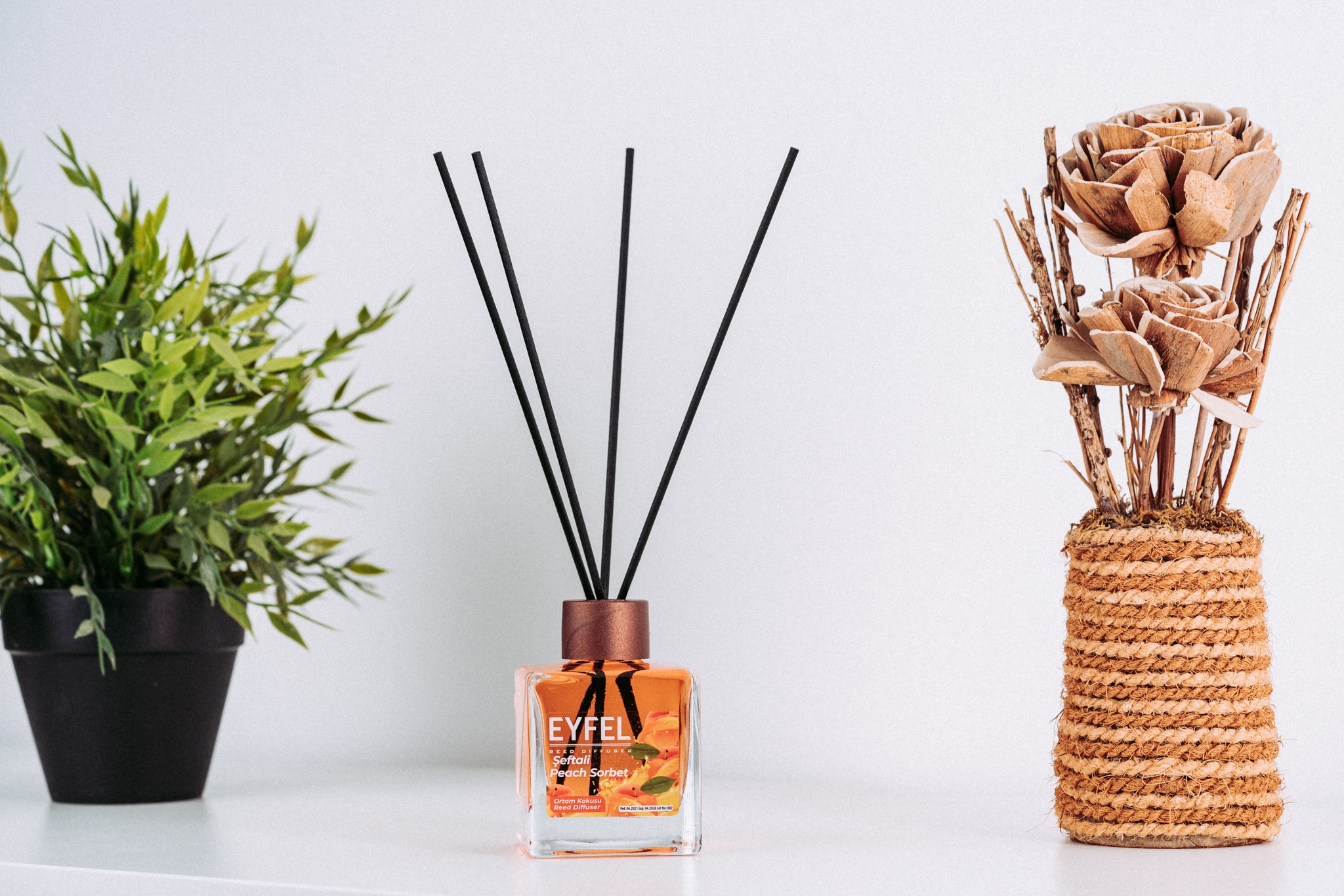 Odorizantul de camera EYFEL elibereaza parfum continuu cu ajutorul betelor de ratan.