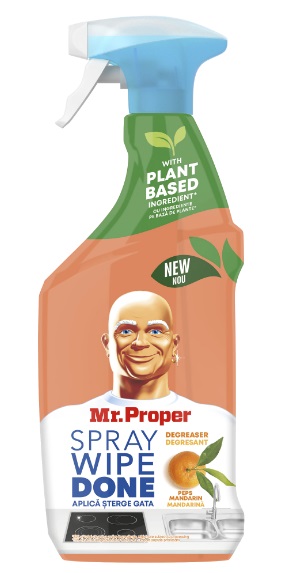 Spray-ul degresant pentru bucatarie Mr Proper patrunde grasimea arsa si murdaria. Este perfect pentru a curata aproape orice suprafata dura din bucataria ta cu formula sa fara frecare, lasand in urma doar o curatenie stralucitoare datorita ingredientului pe baza de plante din formula sa (21% din totalul de agenti tensioactivi, care sunt supusi procesarii).