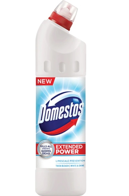 Noul Domestos Extended Power este un dezinfectant inalbitor cu molecule active ANTI-CALCAR care adera la peretii vasului de toaleta chiar si sub apa. Domestos Extended Power are o vascozitate ridicata si, dupa ce este trasa apa, continua sa adere la suprafata din toaleta si sa distruga microbii.