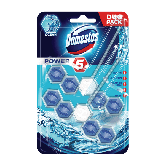Odorizantul de toaleta Domestos Power 5 asigura o curatare igienica a toaletei si un parfum proaspat indelungat