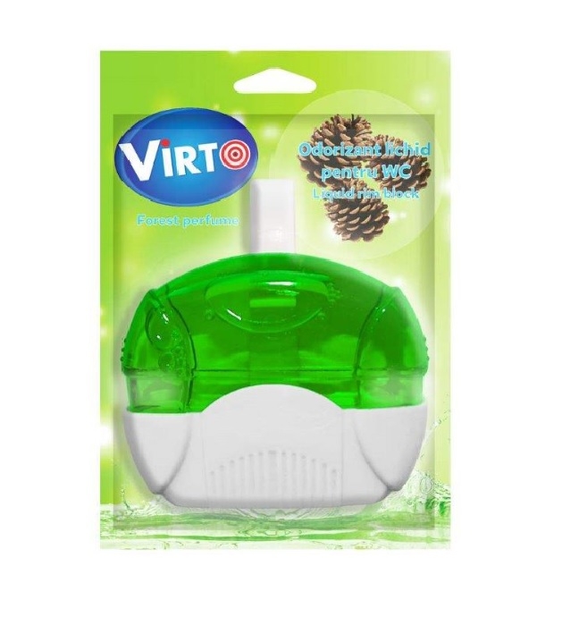 Odorizantul lichid pentru WC Virto are 55 ml si un parfum inspirat de prospetimea padurii. Datorita componentelor sale speciale, acesta confera un miros proaspat si placut la fiecare utilizare a toaletei si o buna igienizare printr-o spumare intensa.