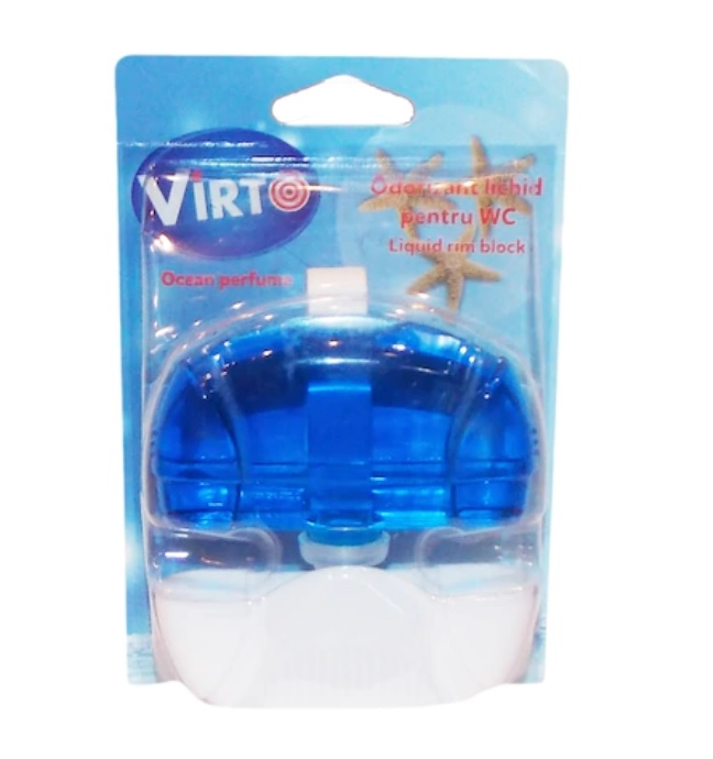 Odorizantul lichid pentru WC Virto are 55 ml si un parfum oceanic. Datorita componentelor sale speciale, acesta confera un miros proaspat si placut la fiecare utilizare a toaletei si o buna igienizare printr-o spumare intensa.