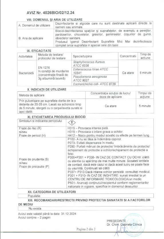 Dezinfectant suprafete mici Igienol Marin te ajuta sa ai mai mult decat o casa curata, o casa dezinfectata si o familie sanatoasa.