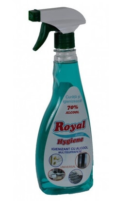 Igienizantul Royal Solutie pentru suprafete cu 70% alcool este solutia ce curata, dezinfecteaza si