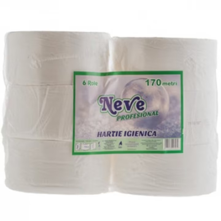 Set hartie igienica, 6 role/set, 170 m/rola, 2 straturi, 100% celuloza, alba, Neve Profesional