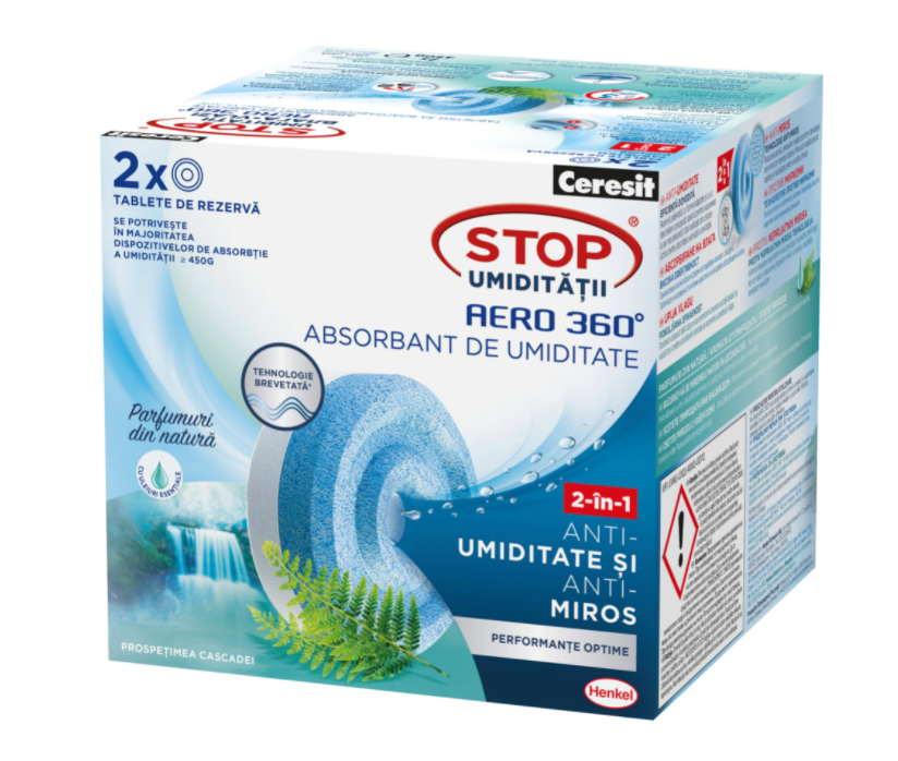 Dezumidificator rezerva absorbant umiditate Aero 360°, 900g prospetimea cascadei 2 buc Ceresit