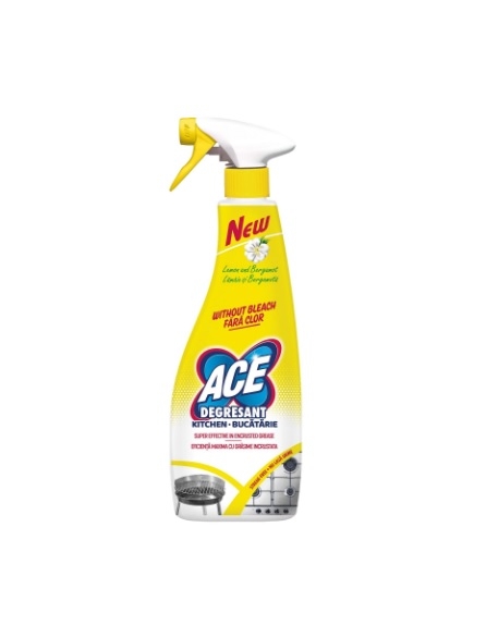 Solutie degresant bucatarie Ace 500ml, degresant fara clor, este un produs special creat pentru curatenia bucatariei cu eficienta maxima imptriva grasimii incrustate