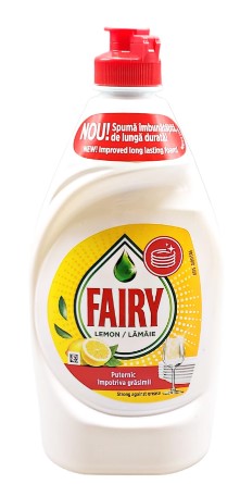 Fairy ofera puterea de curatare pe care va puteti baza oricand la spalatul vaselor. Dureaza de 3X mai mult decat v-ati astepta. De la vase la pahare, cratite si tigai, formula puternica a Fairy elimina cu usurinta grasimea, indiferent de provocare. Disponibil intr-o gama larga de parfumuri, precum Lamaie, Mar si Rodie, in cantitati diferite.