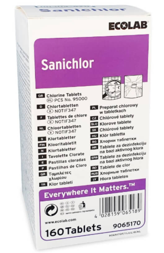 Ecolab Sanichlor Tablete de clor pentru curatare suprafete bucatarie, 160 buc.