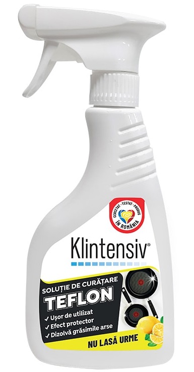 KLINTENSIV – Soluție Curățare Teflon este partenerul de încredere în menținerea vaselor de gătit acoperite cu teflon în stare impecabilă. Cu o formulă delicată, acest produs oferă o curățare eficientă și sigură, menținând integritatea stratului neaderent al vaselor tale de gătit.
