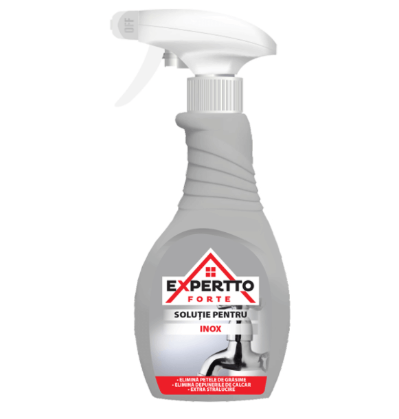 După cum știi, pentru suprafețele din inox este recomandată folosirea unei soluții speciale, care să protejeze acest material în timpul procesului de curățare. Astfel, este ideală formula creată de EXPERTTO FORTE pentru îndepărtarea depunerilor de murdărie, grăsime și calcar sau a altor pete rezistente de pe inox. Aceasta igienizează, nu zgârâie și redă strălucirea suprafețelor curățate.