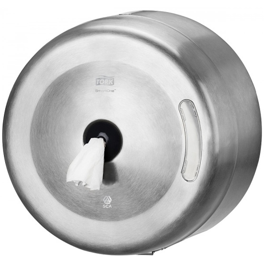 Dispenserul Tork SmartOne este un dozator de oțel inoxidabil eficient și foarte robust, potrivit pentru săli de baie cu trafic intens.