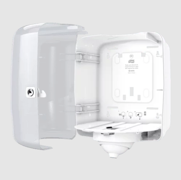 Dispenserul cu derulare centrală mare Tork reflex este recomandat inclusiv în medii sensibile – umede sau în aer liber, datorită materialului rezistent la apă din care este alcătuit și a sistemului perfect închis, care în protejează de murdărie sau umiditate.