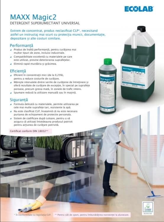 Detergent superumectant universal de inalta performanta MAXX2 MAGIC, 1L, Ecolab - Produs Ecologic.