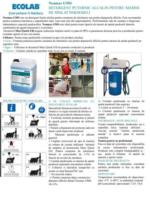 Ecolab Neomax Gms Detergent puternic pentru masina de spalat pardoseli, 10 Kg