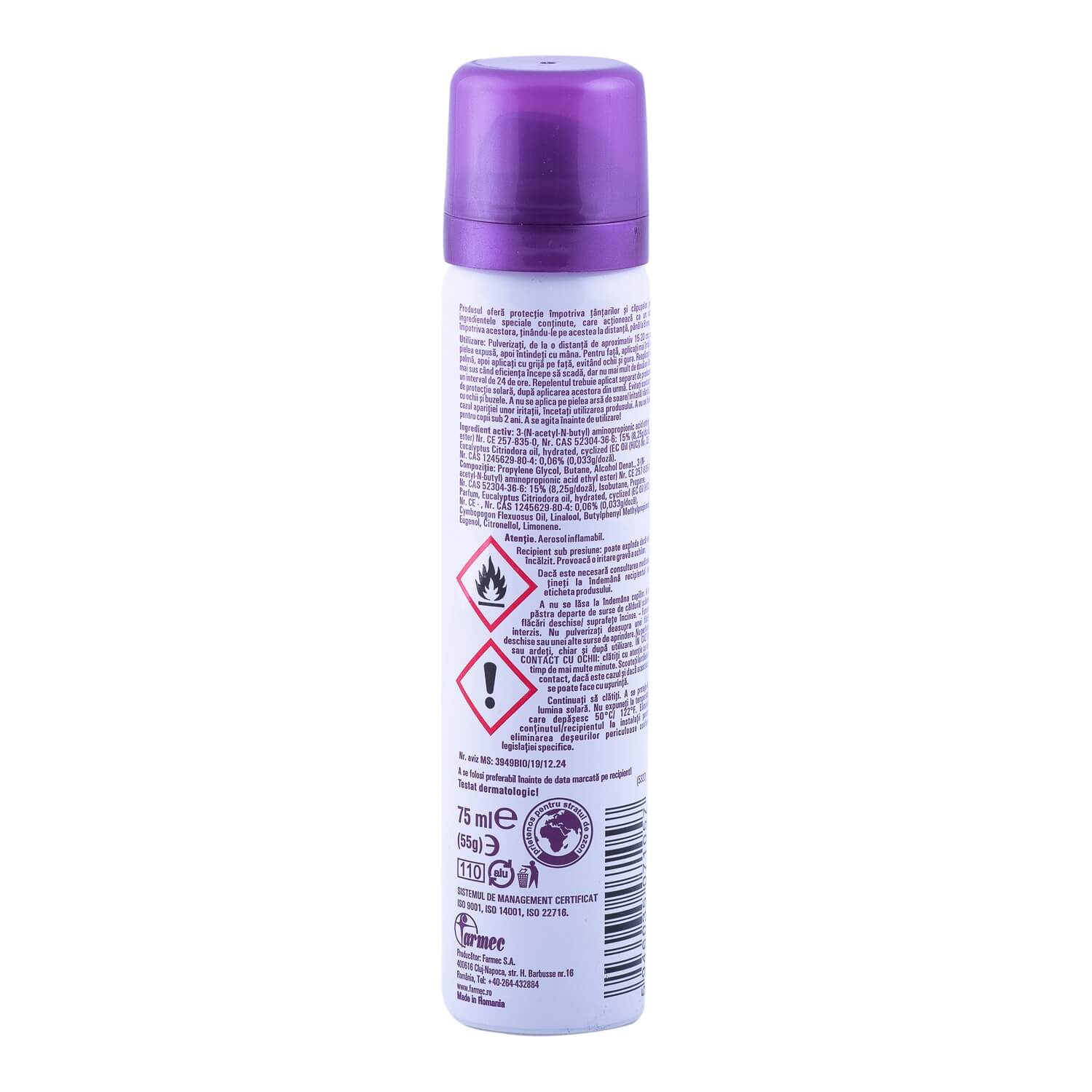 Farmec repelent pentru tantari si insecte ofera protectie impotriva tantarilor si insectelor prin ingredientul special continut, care actioneaza ca un scut impotriva insectelor, tinandu-le la distanta minim 5 ore.