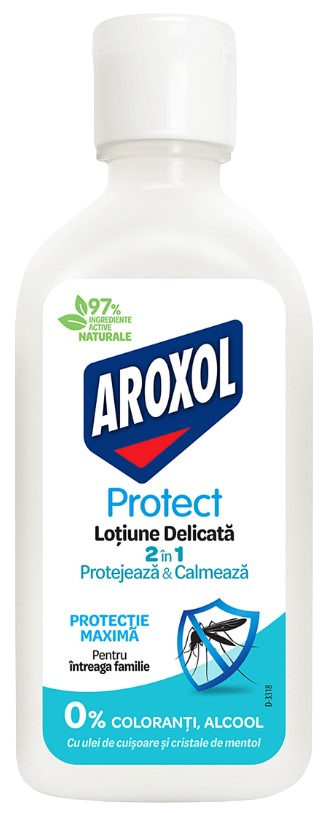 Lotiunea delicata impotriva tantarilor 2 in 1 Aroxol este indicata pentru intreaga familie.