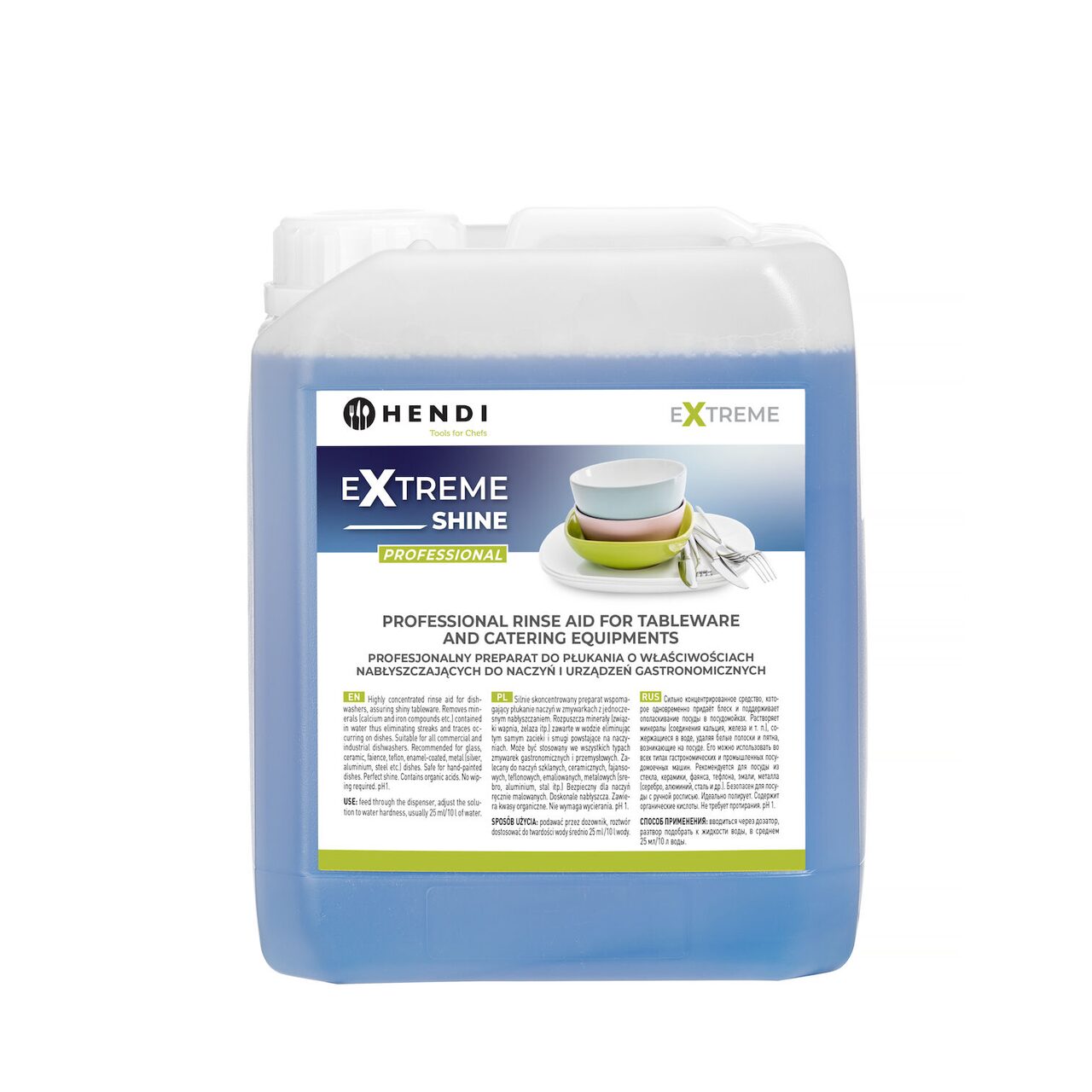 – Atunci cand este utilizat in masini de spalat vase, in combinatie cu solutia de spalat vase HENDI si in cuptoarele combinate, impreuna cu lichidul de curatare, garanteaza curatenia si stralucirea vaselor si echipamentelor spalate
