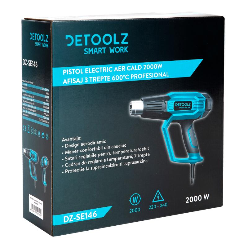 Pistol aer cald 2000 W 3 trepte 600ᵒC PROFESIONAL